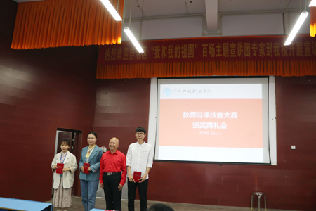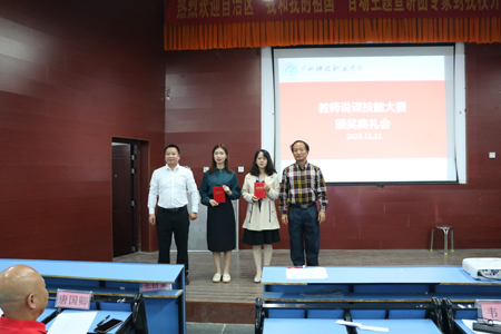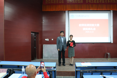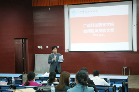 为了促进我校青年教师队伍的进一步成长,提升青年教师把握教材、处理教材的能力,提高课堂教学水平,达到以“说”促“教”的目的。11月11日,由我校教务处主办的“广西科技职业学院教师说课技能大赛”在1楼东多媒体教室举行。本次评委由我院韦超校长、崔海副校长、教务处唐国卿处长、各二级学院领导和代表教师担任。